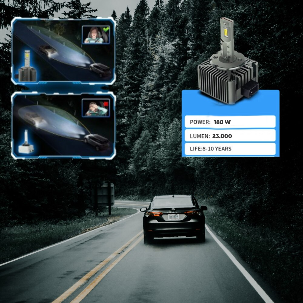 Cu iluminarea strălucitoare și distribuția uniformă a luminii, becurile LED D1S elimină zonele oarbe și oferă o vizibilitate excelentă pe timp de noapte, sporind siguranța la condus.