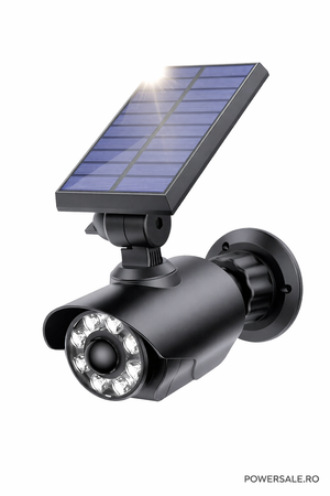 Atenție: Acest dispozitiv este o cameră falsă (nu înregistrează video sau audio) și este folosit doar pentru efect de descurajare + iluminare în exterior.
