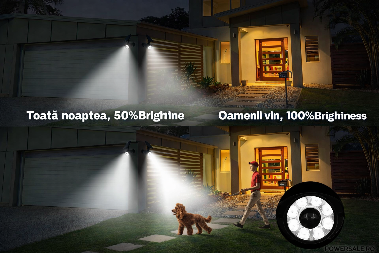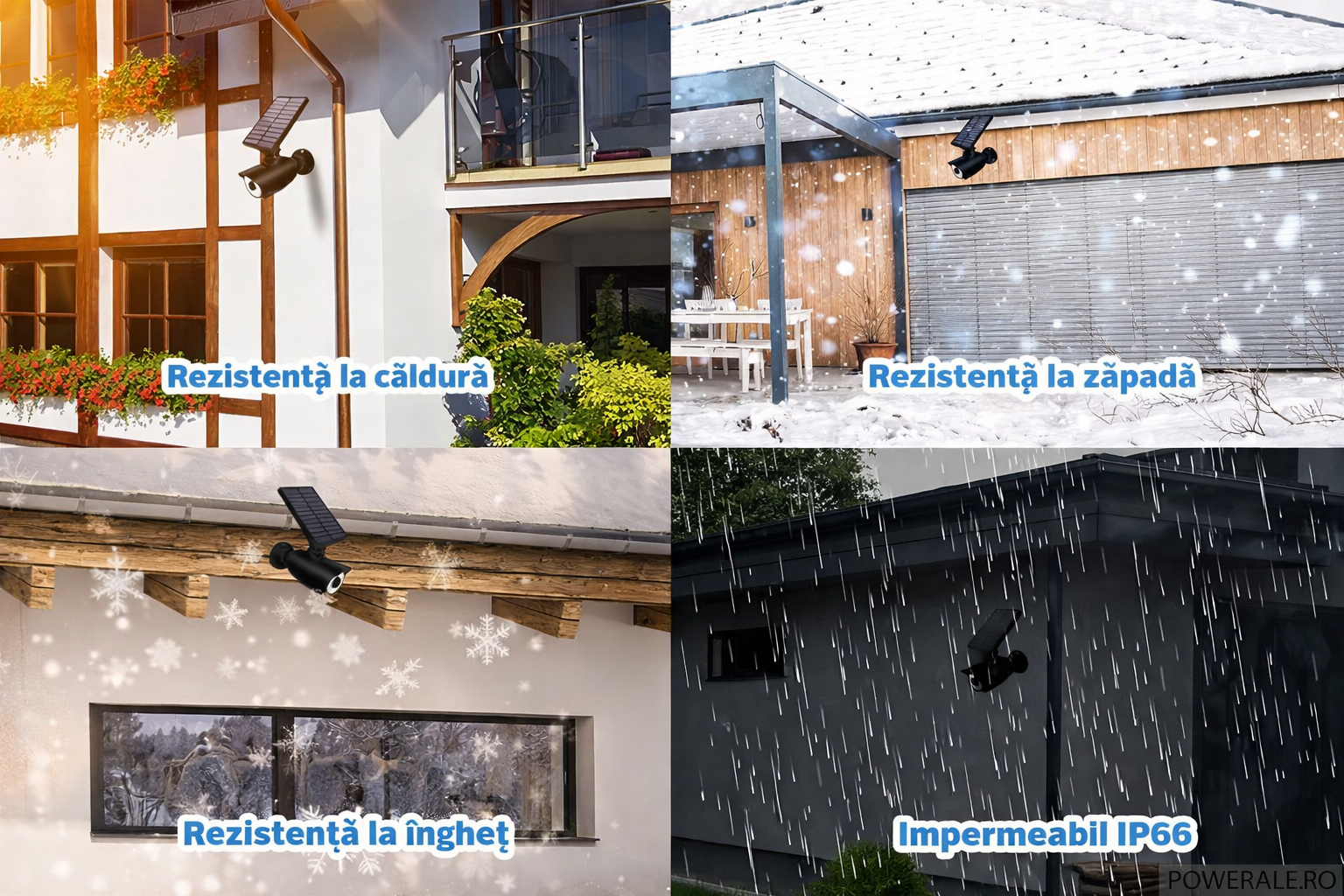 Standard IP66 Waterproof: rezistent la ploaie, zăpadă, praf, soare sau ger, perfect pentru exterior (grădină, curte, garaj, alee).