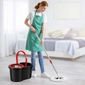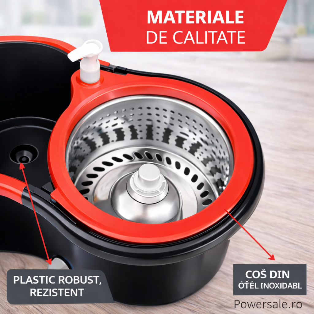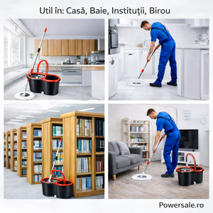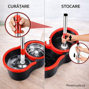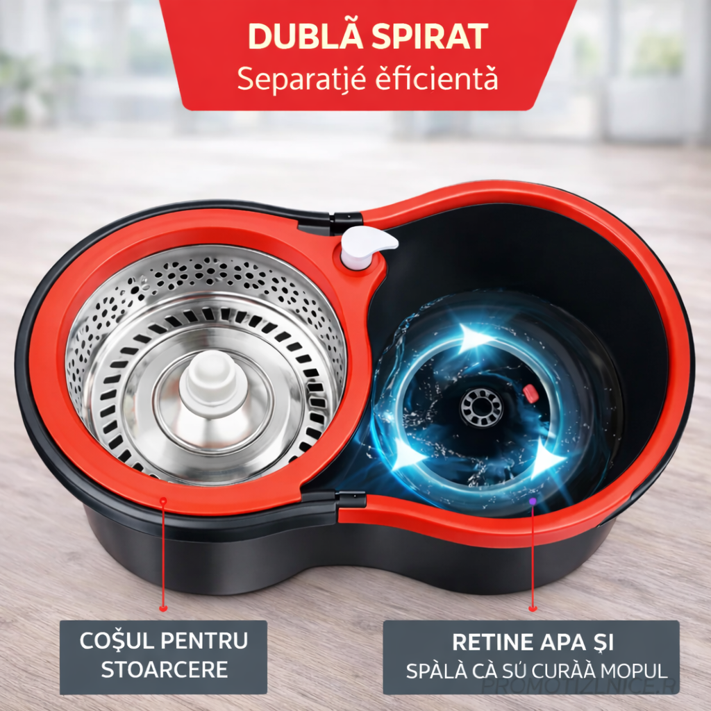 Setul de mop rotativ 360° cu galeata dubla este conceput pentru o curatare mai igienica si mai usoara a pardoselilor din locuinta sau spatii profesionale. Sistemul inteligent permite separarea apei curate de cea murdara, contribuind la mentinerea unui nivel mai bun de igiena in timpul spalarii.