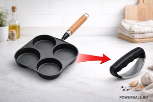Tigaia antiaderenta cu 4 compartimente este solutia practica pentru prepararea rapida si uniforma a micului dejun sau a gustarilor. Datorita designului cu 4 orificii separate, poti gati simultan oua, mini clatite, chiftele, pancakes sau burgeri mici, fara ca preparatele sa se amestece intre ele.