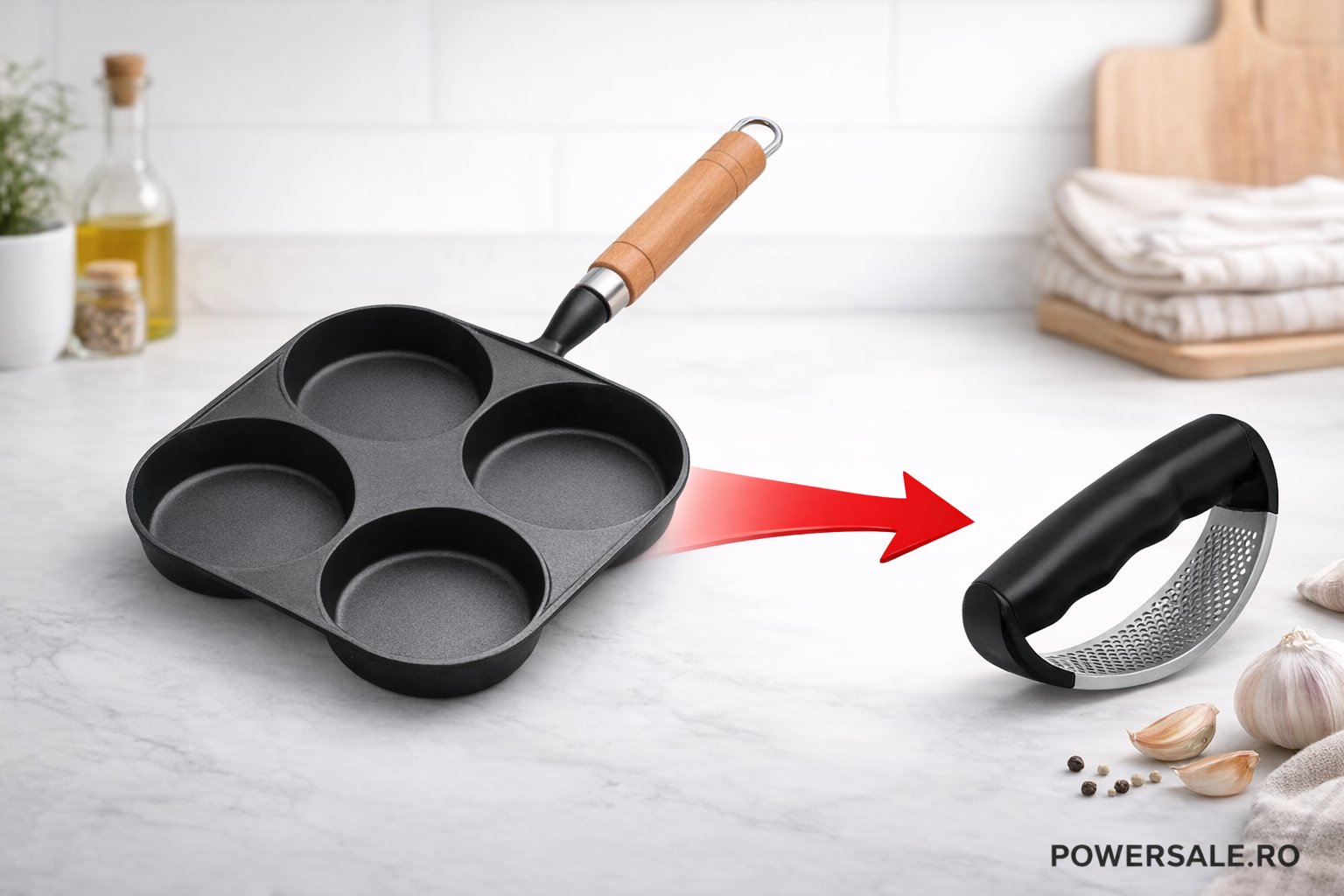 Pachet – Tigaie 4 compartimente + Presa usturoi CADOU